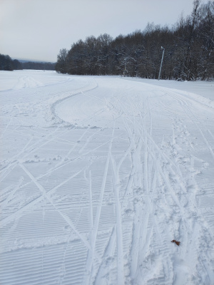 Наконец то выбралась на тренировку😊 На буднях не удалось. Хотя во вторник честно поехала вечером, но недоехала ввиду пробки на дороге. Пришлось вернуться домой и поработать на тренажере(( А сегодня я поехала утром. Ратрак обновил трассу после вчерашнего и позавчерашнего снегопада. Лыжников мало. Лыжи скользили хорошо, но иногда чуть утопали в мягкой лыжне.