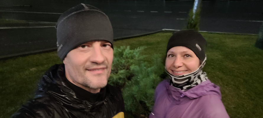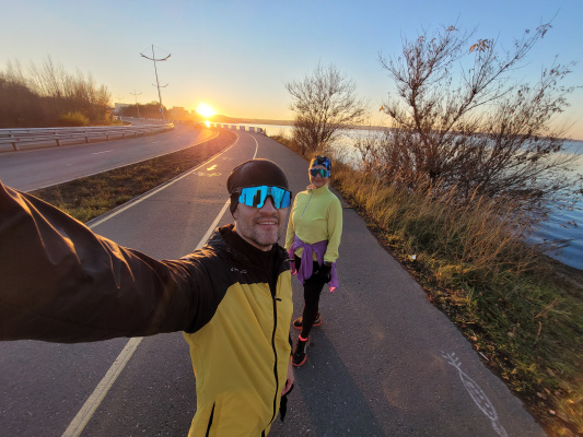 Половинка с половинкой. Конец октября, и совсем не октрябрьская погода. Я бы сказал сентябрьская. Чистое небо, яркое солнце! Сегодня был чудесный день, и был бы грех не воспользоваться таким подарком. Решили с моей половинкой пробежать длительную медлительную, в итоге застали еще и прекрасный закат! Бежали не быстро. Проделанной работой удовлетворены. Плюс еще один полумарафон в этом беговом сезоне 🙂