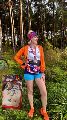 Мы ж бойцы. Правда ведь? Ракеты не сдаются. Волга трейл 21 км по треку. По лесным канавам, склонам и оврагам. Ноги красуются исцарапанными синяками. Первое мое первое место с конца😅😁травма ноги такое себе. Ну всё, пробежали, теперь восстанавливаться. Главное дойти до финиша, хоть доползти. Последние километры бежала не останавливаясь, говоря себе, если остановлюсь, то не смогу бежать. Кто-то покрутит у виска, а кто-то скажет: «вот это сила воли», в любом случае оба варианта верны 😁Моська довольная, значит все отлично 😁☺️😊